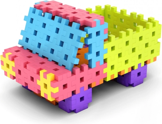 Det store antal ens dele understøtter fri bygning uden tidskrævende søgen efter former. Børn kan nemt skabe biler, fly og figurer.