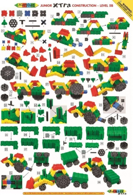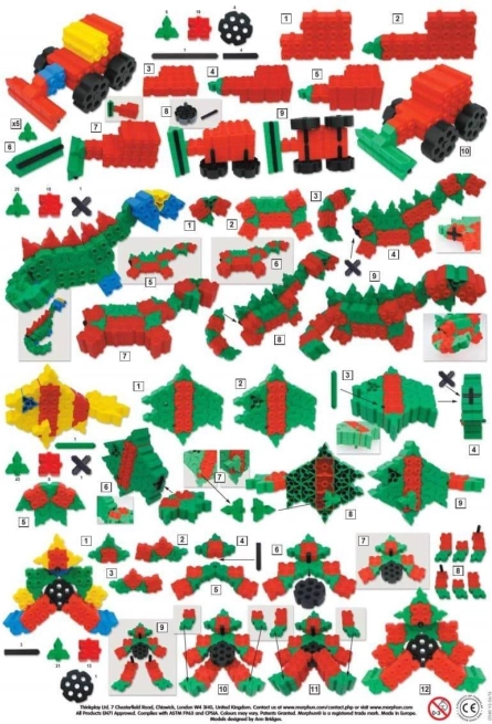 Sættet indeholder 200 dele i forskellige former og farver, som nemt forbindes og skaber solide og stabile konstruktioner. Der medfølger bevægelige dele som hjul og drejeelementer, der giver modellerne liv og funktionalitet. Instruktionerne i sættet muliggør bygning af mere end 100 forskellige modeller, hvilket sikrer mange timers kreativ leg og læring.