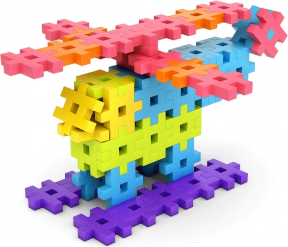 Materialet er robust og helt sikkert (uden BPA, ftalater og PVC). I pakken finder du også en illustreret idébog, som gør de første modeller lettere. Den praktiske boks med klips og håndtag gør det nemt at opbevare og transportere – ideel til udflugter og ferie.