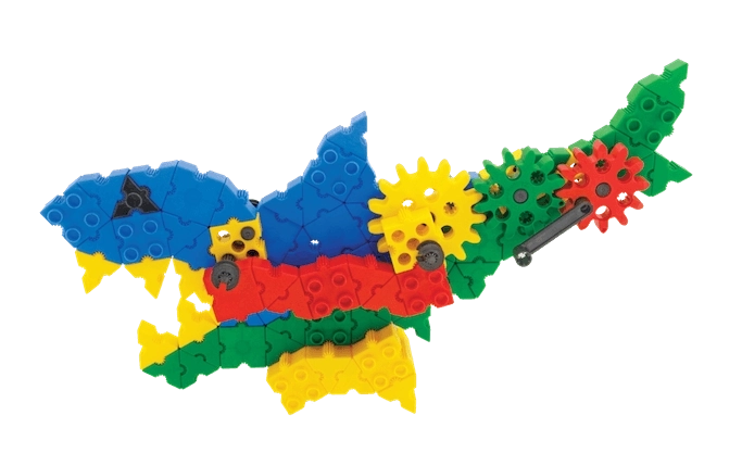 Takket være tandhjul og smarte forbindelser kan børn bygge realistiske, mekanisk funktionsdygtige modeller, som kan sættes i bevægelse og dermed udforske gearprincipper.