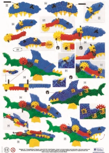 Æsken indeholder 200 farverige dele og overskuelige billedvejledninger. Børn kan bygge en haj eller en krokodille efter skabelon eller kaste sig ud i egne idéer. Holdbare og sikre materialer sikrer lang levetid og bekymringsfri leg.
