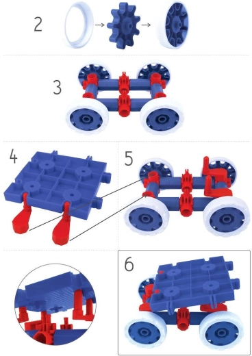 Sættet Korbo 400 klodser med det største antal dæk, nemlig helt op til 56 stk. Det gør det muligt at bygge 14 Hummere og 2 trafiklys på samme tid.