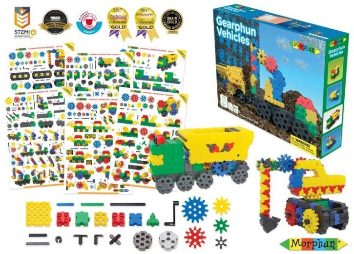 324 dele, som udgør Morphun GearPhun-sættet, giver mulighed for at bygge utallige modeller af alle slags køretøjer. Helikopter, tank, lastbil eller tog – eller måske alle disse byggesæt på én gang? En yderligere fordel ved dette byggesæt er, at de enkelte dele er kompatible med ethvert sæt fra samme serie. Summen af disse fordele betyder, at mulighederne med dette sæt er bogstaveligt talt uendelige. De køretøjer, som børnene bygger, kan sættes i bevægelse ved hjælp af gear og andre bevægelige elementer. At bygge køretøjer af klodser udvikler markant småbørns motoriske færdigheder. Helt sikkert et godt legetøj til den lille mekaniker. Sættet er pakket i en holdbar papæske, som vil være en fantastisk gaveidé til både drenge og piger.