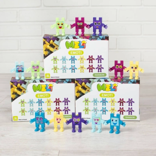 At bygge med Meli Maxi-klodser, beregnet til børn fra 2 år, er et fantastisk alternativ til at støtte småbørns udvikling gennem leg. Denne leg kan nu beriges med nye elementer i form af emotikoner. Sættet med regnbuetema indeholder 12 elementer og 12 klistermærker med forskellige ansigtsudtryk i pastelfarver, alt sammen pakket i en papæske. Ansigtsudtryk kombineres udelukkende med Meli MAXI-klodser.