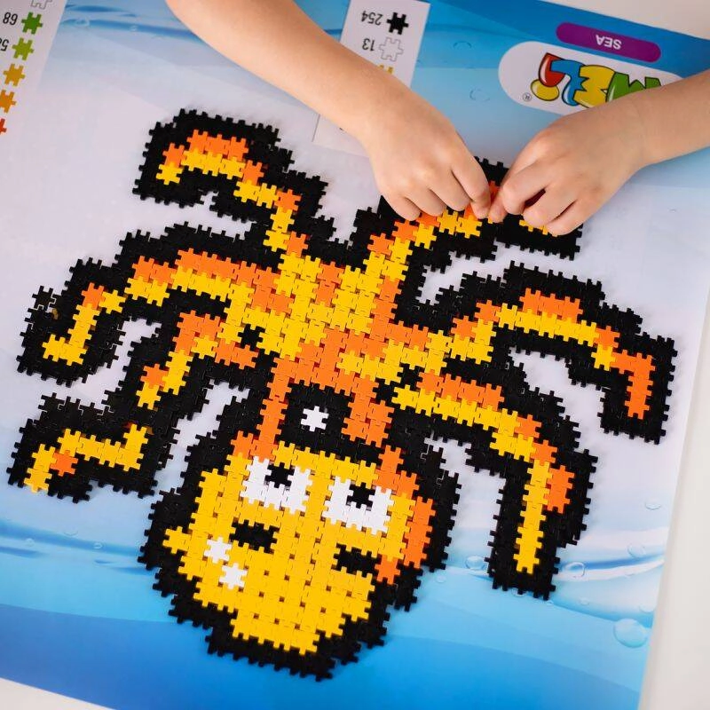 Opdag en kreativ verden med det farverige byggesæt Meli Minis Sea 3i1 med 1000 dele. Børn kan efter skabeloner bygge en sød fisk, en søhest og en blæksprutte eller skabe deres egne pixel art-mosaikker. Delene er af høj kvalitet, sikkert materiale uden BPA, ftalater og PVC, egnet til børn fra 3 år. Inkluderer en stor planlægningsplade 1:1 for nem samling og præcise resultater.