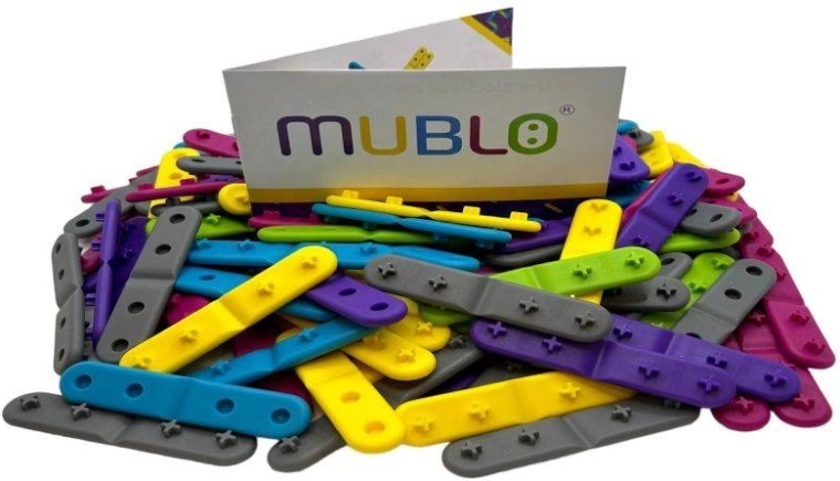 Farvede bøjelige stave Mublo er det perfekte legetøj til børn. Sættet indeholder 100 dele i seks klare og intense farver, som gør det muligt at skabe fantastiske konstruktioner. Stave fås i farverne: blå, lilla, grøn, gul, pink og grå. Takket være deres mønster og bøjelighed kan man nemt skabe kreative og tredimensionelle strukturer.