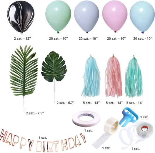 Et sæt fødselsdagsdekorationer, som gør det muligt at pynte fødselsdagsfesten og give den en særlig og unik atmosfære. Takket være den originale udsmykning bliver festen uforglemmelig ikke kun for hovedpersonen, men også for alle gæsterne. Sættet med fødselsdagsdekorationer er ideelt til at arrangere en fest både hjemme og udendørs. Sættet skaber en smuk baggrund til mindeværdige fotos og giver børnene masser af underholdning.
