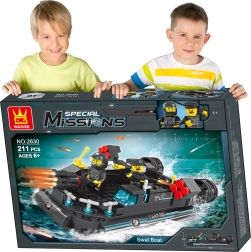 Byg et actionfyldt eventyr på vandet med dette byggesæt af en politibåd. Sættet indeholder 211 klodser og 2 figurer, som giver børn mulighed for at skabe spændende historier. Legen med byggesættet udvikler finmotorik, fantasi og koncentrationsevne.