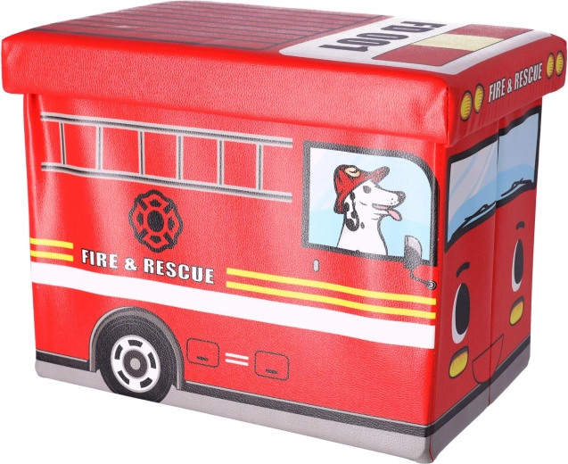 Opbevaringsboks til legetøj med puf — Brandmand er et multifunktionelt og praktisk produkt, som passer smukt ind på børneværelset. Boksen er ideel til opbevaring af legetøj, klodser, bøger m.m. Den rummer alt dit barns legetøj og sparer værdifuld plads. Boksen har to opbevaringsrum, som gør det muligt at adskille legetøjet. Takket være denne opdeling vil der altid være ryddeligt på dit barns værelse. Legetøjsorganisatoren har et låg på toppen, som giver hurtig og nem adgang til tingene indeni. Derudover kan containeren bruges som et praktisk bord, en komfortabel fodskammel eller et ekstra sæde til uventede gæster. I al sin enkelhed og funktionalitet er produktet også meget dekorativt.