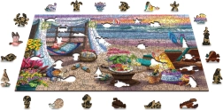 Puslespillet består af specialformede brikker, der forestiller dyr, bygninger og genstande, hvilket giver et ekstra lag af sjov.