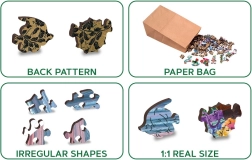 Æsken indeholder en separat forlæg, som gør det nemmere at lægge, og alt er placeret i en miljøvenlig papæske. Puslespillet er lavet af robust HDF-træfiberplade med en tykkelse på 3-4 mm.