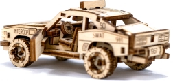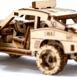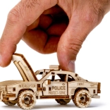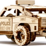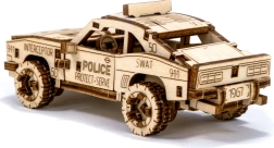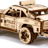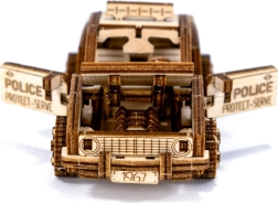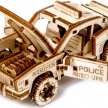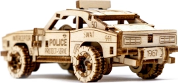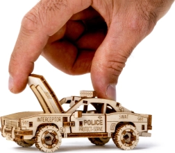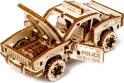 Samlingen er uden lim, og delene passer præcist sammen. Resultatet er en robust miniature af en politibil, som tager sig godt ud på reolen eller skrivebordet. Mærket WOODEN CITY lægger desuden vægt på økologi – produktet er pakket uden plast.