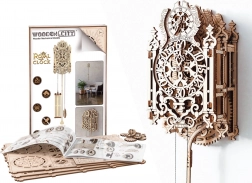 Træ 3D-puslespil WOODEN CITY Kongelige ur er et fremragende mesterværk med avancerede detaljer og elegante linjer. Den perfekte gave til elskere af skønhed og overraskelser. Modellen er inspireret af rokoko-stilen og inkluderer detaljerede, udskårne sammenflettede mønstre. Det kongelige ur er designet til at fungere som et ægte tidsmåler med justerbar pendulperiode, som afhænger af mængden af indsatte mønter.