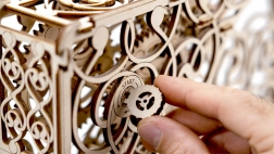 Vi præsenterer et unikt mekanisk billede fra WOODEN CITY, der imponerer med sin detaljerigdom og funktionalitet. Dette træ 3D-puslespil forener skønhed, videnskab og kunst i ét. Efter samling vækkes modellen til live med en specialnøgle og viser bevægelsen af tandhjul, der danser harmonisk efter matematiske beregninger.