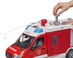 Den detaljerede redningsmodel i skala 1:16 bringer autentiske funktioner, som børn elsker. Kabinen rummer tre brandmænd, og yderligere tre kan sidde bagi. Gennemsigtige, uknuselige ruder, åbningsbare døre og side skabe med nedklappelige låger giver legen ekstra realisme.