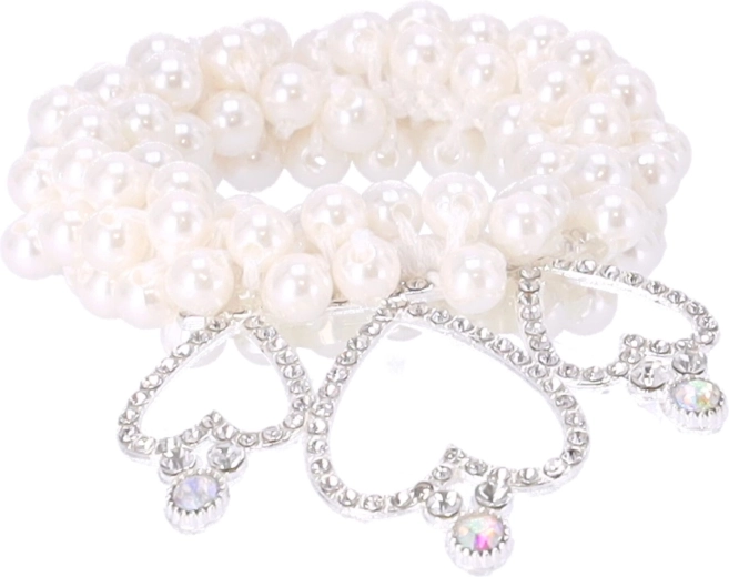 Denne dekorative hårelastik med perler og glitrende hjerter/krone er det perfekte valg til små prinsesser og unge piger, der vil få deres frisure til at stråle. Takket være det behagelige materiale er den komfortabel at have i håret, river ikke hår ud og holder frisurens form hele dagen.