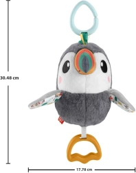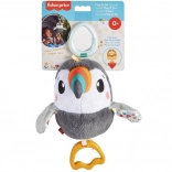 Den søde tukan fra Fisher‑Price er et blødt hængelegetøj til barnevogn, autostol og tremmeseng. Den byder på blid raslen, knitrende vinger, farvet næb og bideringe, som lindrer ved tandfrembrud. Takket være den universelle clip er den altid ved hånden og understøtter sanseudvikling og finmotorik hos babyer fra fødslen.