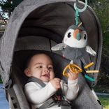 Sikre broderede øjne og bløde materialer er ideelle allerede fra de første dage. Den praktiske clip gør det nemt at sætte fast på barnevogn, autostol, bæresele eller taske, så yndlingslegetøjet kan følge dit barn overalt.