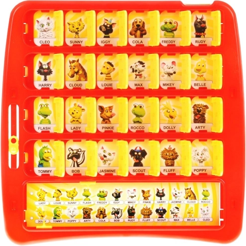 Spillerne sidder over for hinanden, hver spiller har en konsol foran sig. Spillerne stiller hinanden spørgsmål, som kun kan besvares med "ja" eller "nej". Spillerne holder nøje øje med hinanden. Alle konsolvinduer bør være åbne. Spillet går ud på at gætte modstanderens valgte figur på baggrund af de stillede spørgsmål. Hver spiller vælger én figur på figurkortet. Jo hurtigere du identificerer modstanderens figur, desto hurtigere bliver du vinderen! Yderligere variationer i spillet fås i versionerne "Mesterskab" og "Udfordring". Vinderen er den spiller, der først gætter, hvem modstanderen er. | |