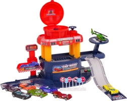 Der er tilgængelig et rigt sæt med 8 biler og en helikopter, som nemt kan betjenes af små hænder. Alle funktioner er designet til nem håndtering af børn.