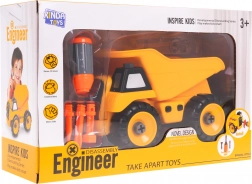 Denne plastbyggedumper med skruetrækker er ideel til børn, der elsker at skabe og udforske teknik. Takket være det enkle skruesystem træner barnet øje–hånd-koordination, tålmodighed og forstår de grundlæggende principper for montering og demontering. Den løftbare ladkasse giver legetøjet et realistisk præg – last, transportér og tip af.