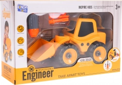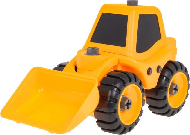 Denne bygge-bulldozer fra serien af skru-sammen køretøjer er det ideelle legetøj til små ingeniører. Takket være robust plast og et enkelt skruesystem kan modellen sikkert skilles ad og samles igen uden risiko for at beskadige delene. Den bevægelige arm og frontskovlen understøtter realistisk byggeleg.
