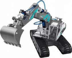 Den hydrauliske gravemaskine til samling er et pædagogisk byggesæt, der på en forståelig måde viser børn, hvordan hydraulisk vandtryk omdanner kraft til bevægelse. Efter samling kræver den ingen batterier – betjeningshåndtag og vand sætter arm, bom og skovl i bevægelse ligesom på en rigtig entreprenørmaskine.