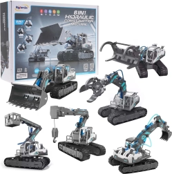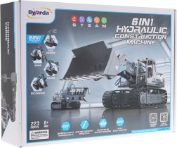 Dette lærerige byggesæt introducerer børn til principperne for hydraulik og mekanik på en legende måde. Af 223 komponenter kan du bygge 6 funktionelle modeller: gravemaskine, læssemaskine, brandbil med platform, kran, grab og bulldozer. Alle modeller deler en 360° roterende overbygning og et bæltechassis med gummibælter for jævn bevægelse.
