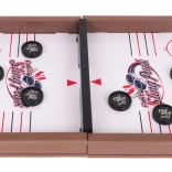 Takket være den kompakte plade og den holdbare trækonstruktion kan du let tage det med overalt – hjem, sommerhus eller på besøg. I pakken finder du 10 pucks, så du er klar til at spille med det samme.