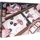 Oplev den spændende action i Sling Puck: To spillere står over for hinanden og forsøger så hurtigt som muligt at skyde alle deres pucks gennem den smalle åbning i midterskillet over på modstanderens side. Spillet er intuitivt, hurtigt og perfekt til både korte dueller og længere turneringer.