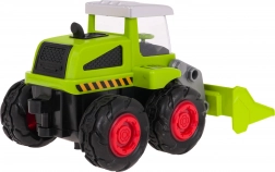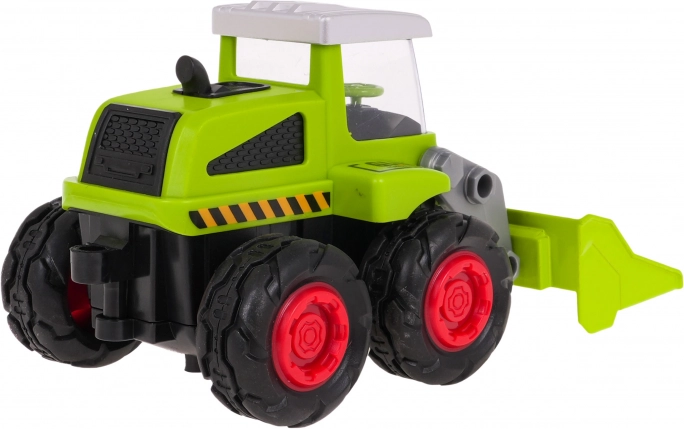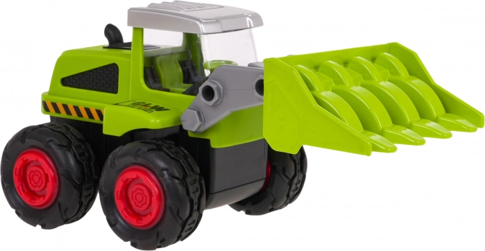 Takket være gummidæk med markant mønster holder køretøjet stabiliteten på forskellige underlag. Baghjulstræk understøtter jævn bevægelse og gør legen endnu mere realistisk. Ideel som gave til små byggere og fans af landbrugs- og entreprenørmaskiner.
