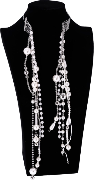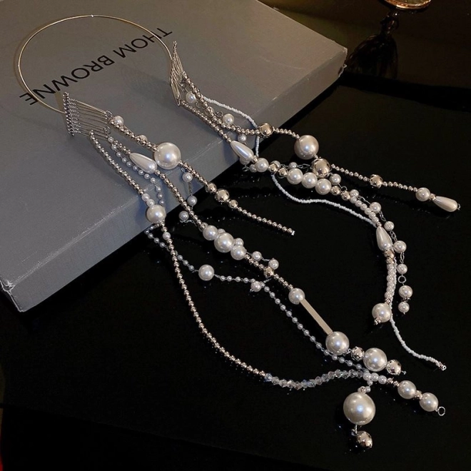 Hårbåndet giver et sofistikeret look takket være de kunstige perler og kæder.