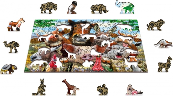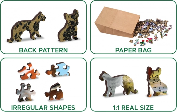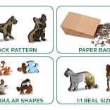 Specialformede brikker i form af dyr og genstande gør samlingen levende. Bagsiden med et dekorativt mønster tilføjer en ny udfordring.