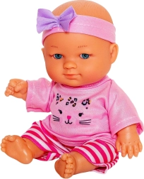 Dukken Julka kommer som et sæt med en let lyserød bæresele/vugge og et gennemsigtigt badekar til hyggelige badestunder. Børn vil elske hendes milde udtryk, det søde lyserøde outfit med katteprint og hårbøjlen. Takket være gennemtænkte detaljer og behagelige materialer bliver Julka hurtigt favoritvennen til både kram og leg.