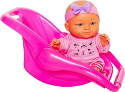 Lyserød plastbæresele/vugge med integreret hank til sikker transport af dukken både hjemme og ude. Ideel til realistisk rolleleg med omsorg.