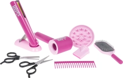 Der medfølger også en holder til føntørreren for overskuelig opbevaring samt en række nødvendige tilbehørsdele: klassisk saks, effilersaks, kam og børste. Takket være den sikre udførelse er sættet ideelt til børn fra 3 år og udvikler på fin vis finmotorik, fantasi og sociale færdigheder.