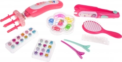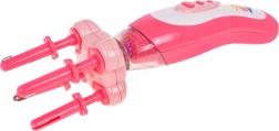 Veludstyret sæt med en maskine til at flette hår og en maskine til at påføre hårsmykker, beregnet til børn fra 6 år. Sættet består af 24 dele. Medfølger gør en maskine til at flette hår og en maskine til at påføre perler i håret, desuden en hårbørste, “diamanter” og hårelastikker. Maskinen til at flette fletninger drives af 2 x AA 1,5 V batterier, batterier medfølger ikke. Brug af maskinen er meget enkelt: indsæt 3 hårtotter i hullerne i klipsene og skub diamantknappen opad. Færdig! Maskinen til at påføre perler i håret ligner et glattejern. Den bruger ikke batterier. For at påføre et smykke i håret placeres smykket på maskinens øverste del og klipsen på den nederste del. Indfør derefter en hårtot i maskinen og tryk til. Færdig! Applikationerne og klipsene kan bruges flere gange. | |