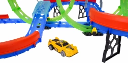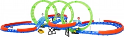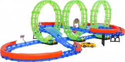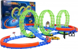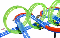 Byg din egen racerbane med tre store løkker og nyd en spændende tur med LED-bilen. Takket være de fluorescerende elementer lyser banen i mørke, så løbene ser fantastiske ud også om aftenen. Den stabile konstruktion, beskyttelsesbarrierer og varierede sektioner sikrer jævn passage selv ved høj hastighed.