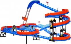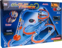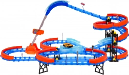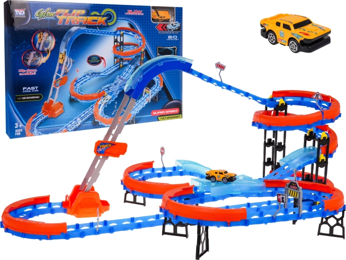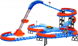 Skab din egen ekstreme racerbane. De modulære dele gør det muligt at bygge en flersporet/etageopbygget bane med loops, stige og dynamiske nedkørsler. Bilen med LED-underslys drives af et indbygget 3,7 V batteri og oplades nemt med USB-kabel (inkluderet).
