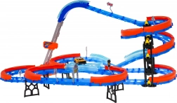 Banen kombinerer loops, niveauskift og en stige med rækværk i svingene, så bilen holder sporet selv ved høj fart.