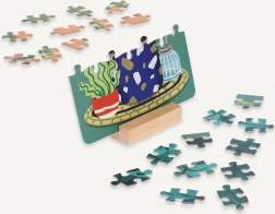 Emballagen er helt plastfri, indeholder to farvede forlæg af motiverne og en træholder til den sidste brik. Det færdige billede måler cirka 12 × 26 cm, hvilket gør det til et ideelt valg til en hurtig, konkurrencedygtig runde derhjemme eller på farten.