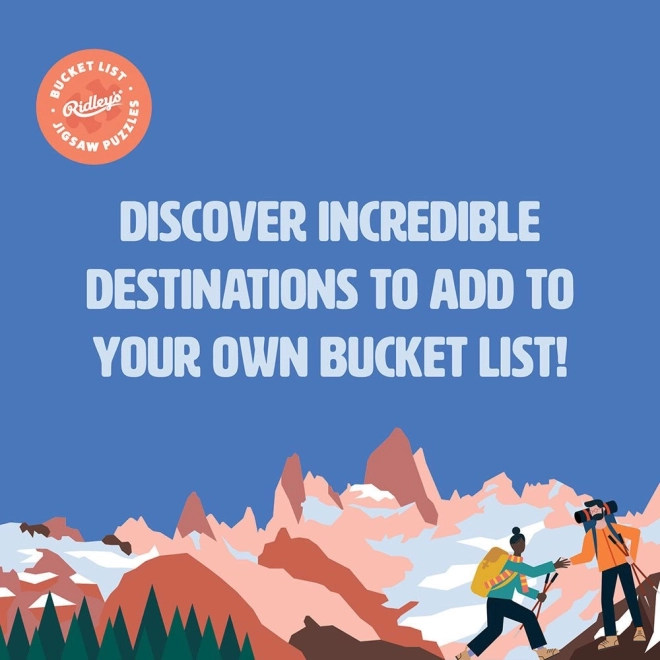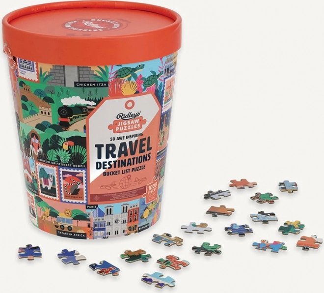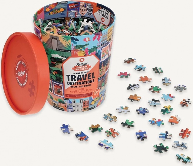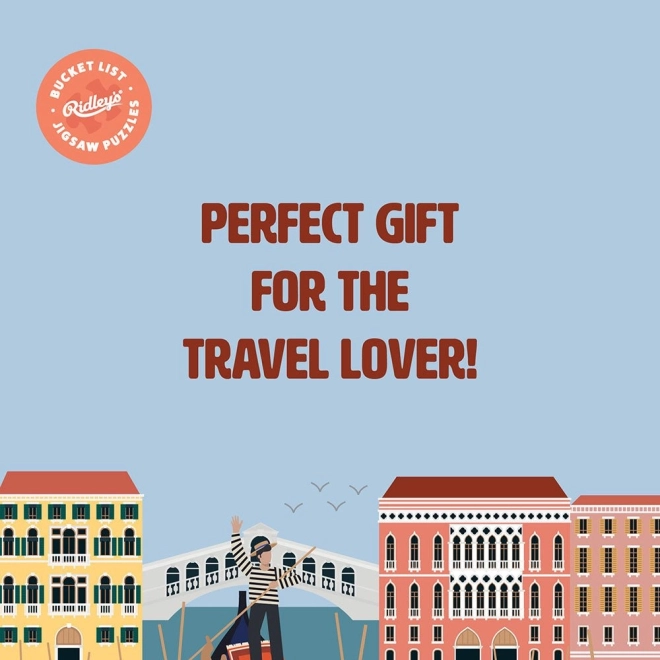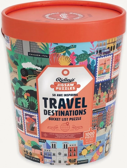 Oplev verden fra sofaen med de unikke puslespil fra RIDLEY'S GAMES, der viser 50 ikoniske turiststeder fra hele verden. Stilfuld spandemballage, 1000 brikker for en behagelig udfordring og medfølgende forlæg. Ideel gave til rejselystne og designentusiaster.