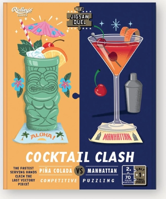 Nyd spændende underholdning for to med originale kapløbspuslespil. To cocktailmotiver, Piña Colada og Manhattan, lægger I mod hinanden og kæmper om den sidste dobbeltsidede brik i den træstand. Ideelt til hurtige konkurrencer, sjov med venner og som gavevalg for puslespilsentusiaster.