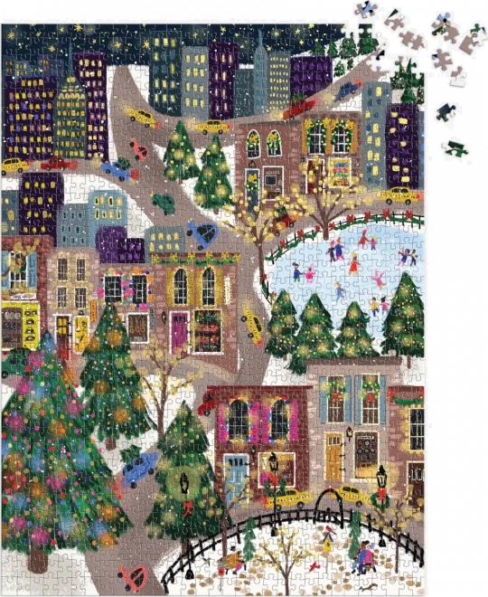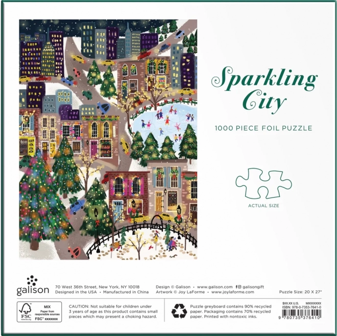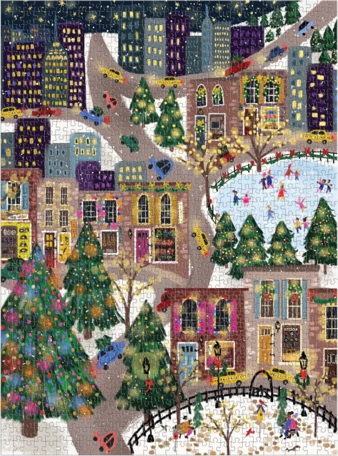 Oplev en festlig byscene fuld af farver, lys og skøjteløbere. Puslespil med metalliske folier på udvalgte dele af motivet skaber en unik glimtende effekt, der træder frem ved forskellig belysning. Den perfekte gave til puslespilsentusiaster og som vinterlig hjemmedekoration.
