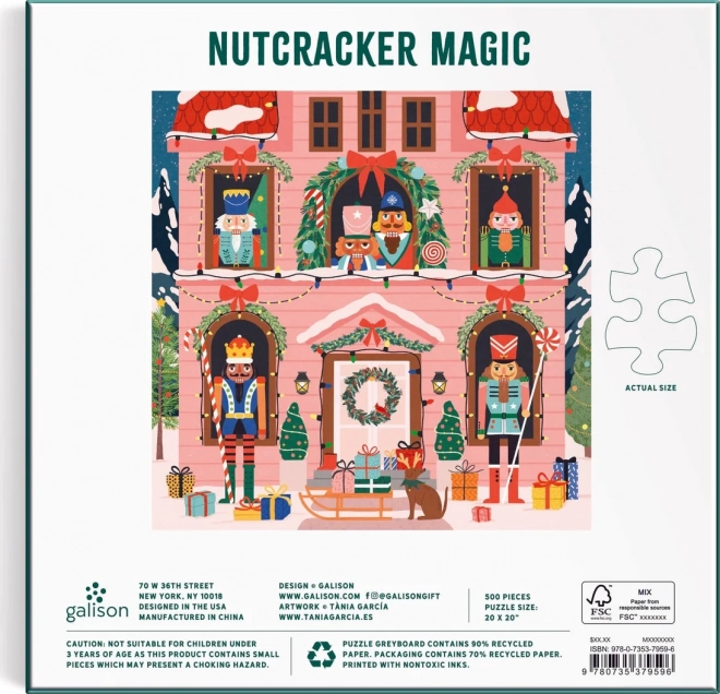 Nyd underholdningen med 500 brikker puslespil Nøddeknækkerens magi, med motiv og skabelon. Mål ved samling 51 x 51 cm.
