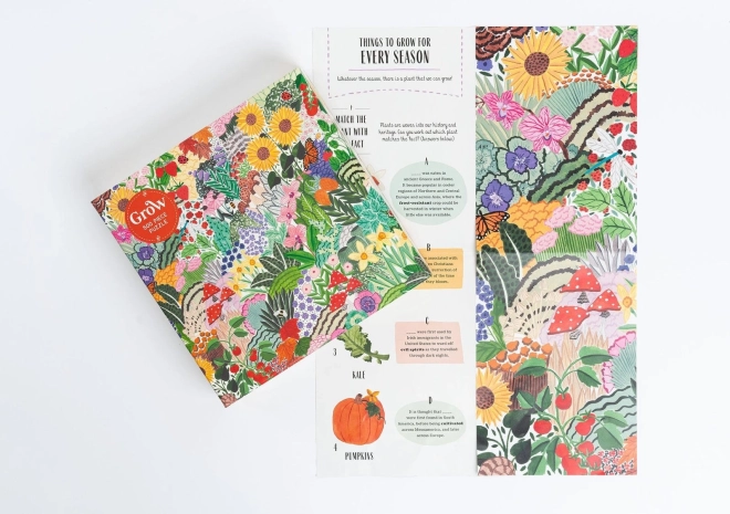 Fordyb dig i en farverig verden med puslespillet Vækst. Sættet byder på smukt illustrerede brikker, der tilsammen danner en forårsscene rig på blomster og grønt. Indeholder:
