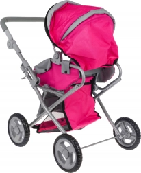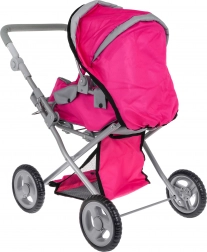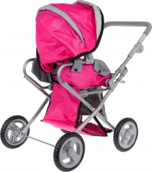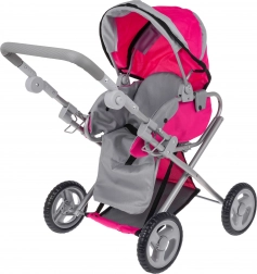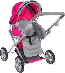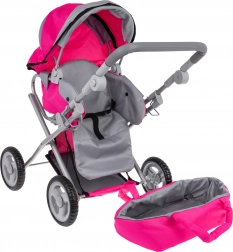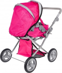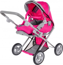 Dukkevognen 2-i-1 efterligner en ægte model – den fungerer både som barnevogn med lift og som sportsvogn. Den robuste metalramme, tekstilbetræk og fire hjul giver stabilitet og nem manøvrering, så selv de mindste børn kan styre den uden problemer. Den praktiske sammenklappelige kaleche beskytter dukken, og sikkerhedsseler holder den på plads.