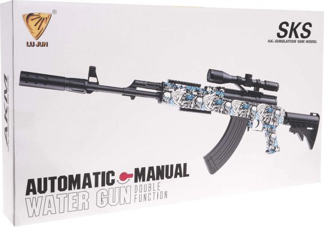 Denne realistisk udførte AKM gelpistol kombinerer autentisk look med sikrere sjov takket være hydrogelkugler. Hæld blot vand på i 4–6 timer, hæld overskydende vand fra, og du er klar til action. Med automatisk og manuel tilstand kan alle vælge deres skydestil, mens optik med forstørrelse hjælper med mere præcis sigtning.