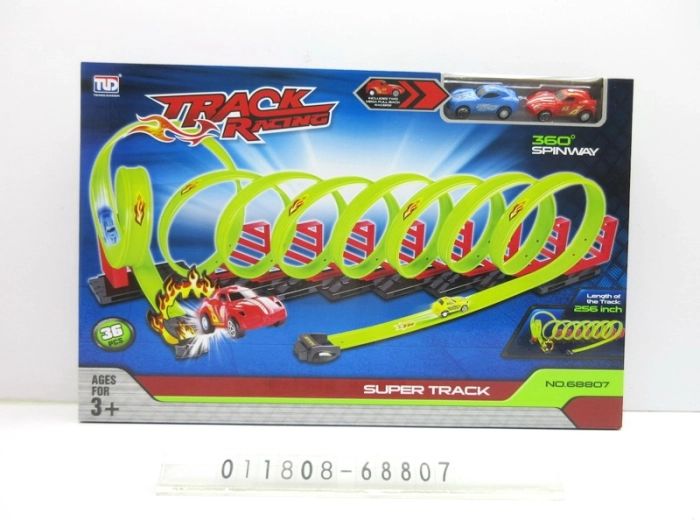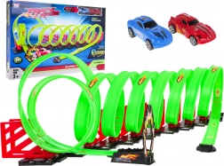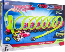 Byg din egen racerverden. Sættet indeholder 36 dele til nem montering af en bane med flere loops, lige stræk og et hop gennem en ildring. Takket være pull-back-motoren er det nok at trække bilen tilbage og slippe – den suser afsted, klarer 360° loops og dynamiske gennemkørsler.