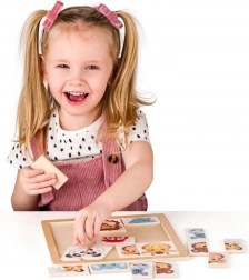 Dette træpuslespil med safarimotiver giver børn glæden ved at opdage. Hvert dyr er delt i flere brikker, som børnene samler i de rigtige kombinationer – eller kreativt kan blande. Det robuste træ og de klare farver indbyder til gentagen leg og udvikler finmotorik og koncentration.